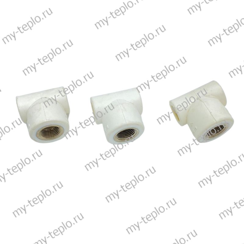Трехсторонний полипропиленовый фитинг для подсоединения к полипропиленовому трубопроводу компонента инженерной системы с резьбовым подключением.